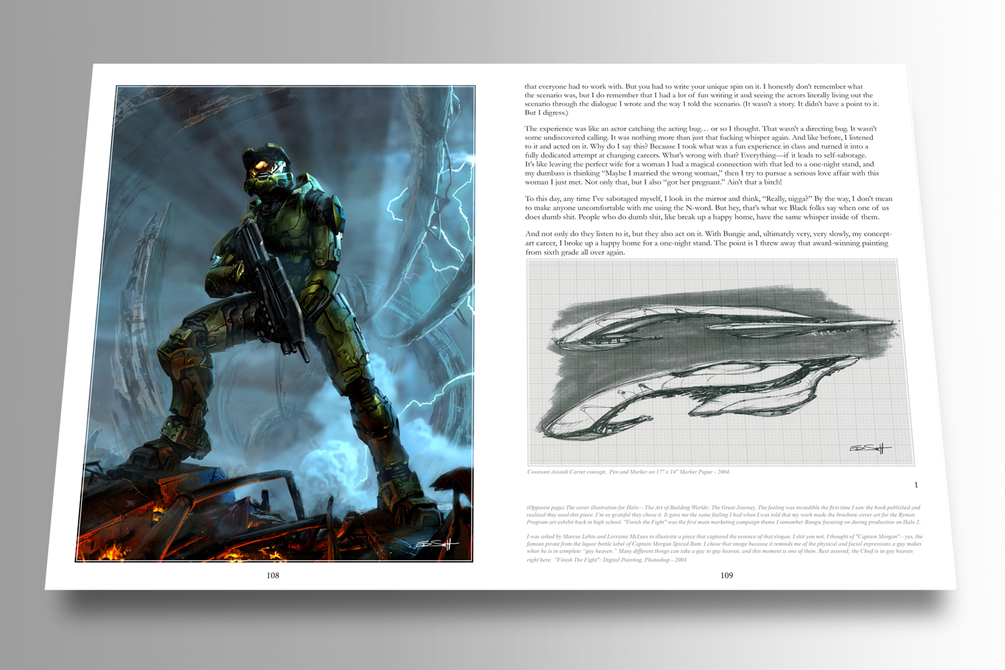 The book begins with a foreword by Marcus Lehto. (Art/Creative Director at Bungie from 1996 - 2012) and also chronicles Eddie's life story as an artist in Three Acts: